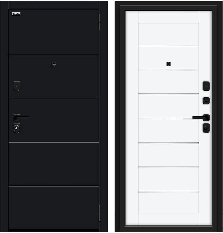 Надежная входная Дверь Браво Прайм/SBlack-Black Shell/White Silk премиум класса по цене 41 103 руб. Большая толщина стали защитит от проникновения в ваш дом, квартиру или коттедж. Используется очень качественная фурнитура: замки, цилиндры, ручки, защелки. Покрытие и отделка двери изготовлено под внимательным контролем производителя. Дверь имеет долгий срок службы и гарантию.